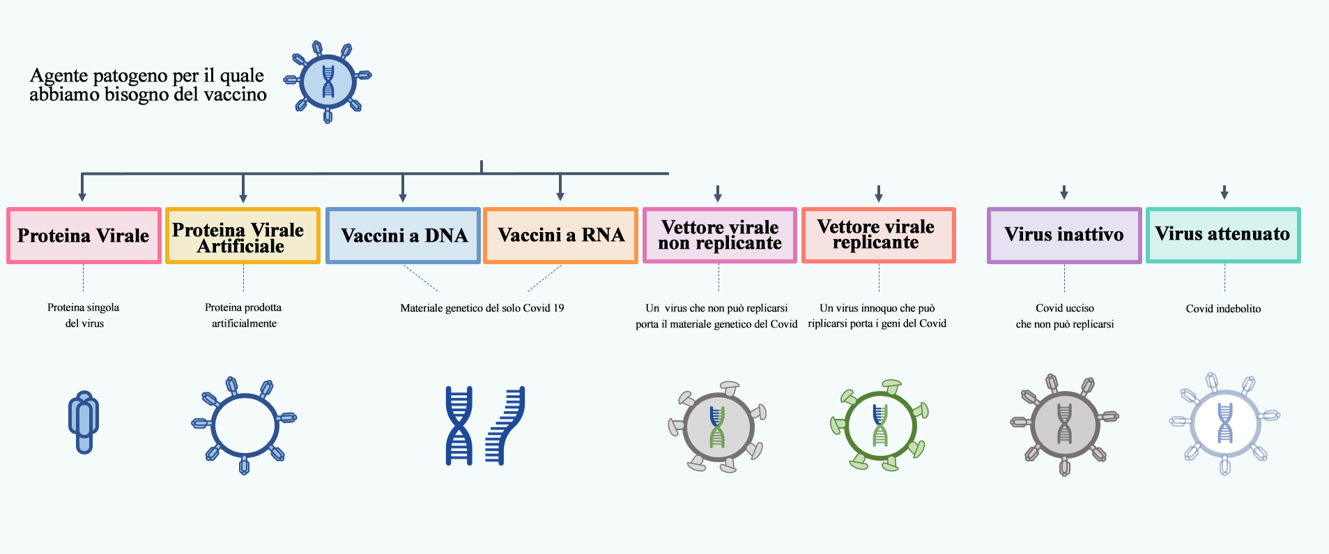 La novità dei vaccini in corso di somministrazione è che per la prima volta si inietta materiale genetico del virus. Questo materiale (RNA o DNA) induce le cellule a produrre una proteina specifica del virus (detta “spike“). Contro questa proteina il sistema immunitario si attiva, mantenendo quindi la “memoria” e la capacità di rispondere all’infezione per un tempo ancora non definito. Pfizer, AstraZeneca, Johnson non sono gli unici vaccini studiati. Al 26 marzo 2021 ci sono ben 100 “candidati-vaccini”. Oggetto di 283 studi clinici, di cui 13 già approvati in almeno un Paese. Ne esistono di 8 tipi diversi. Con i vaccini a RNA o DNA (Pfizer e AstraZeneca) viene inoculato materiale genetico del virus.