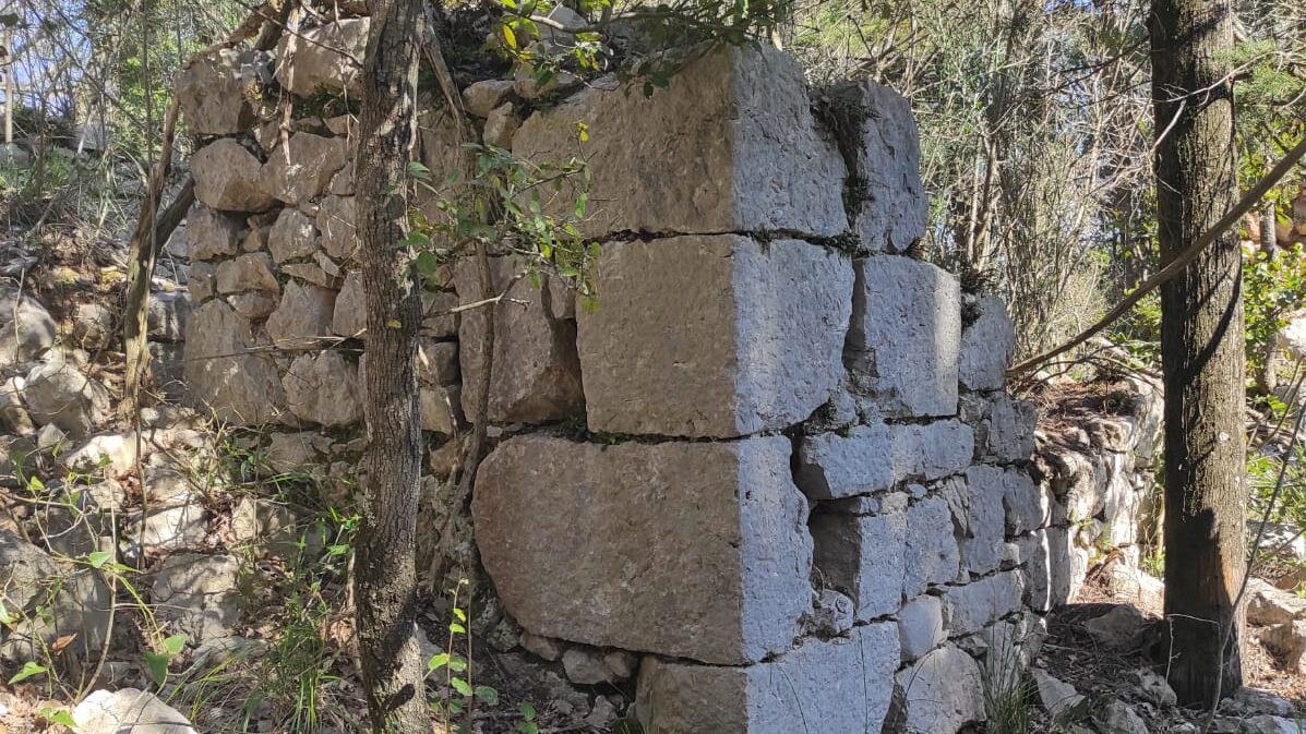 Passato il monumento e velocemente attraversato il famoso “tornante della Rocca”, riprendo il sentiero che secondo i miei calcoli dovrebbe portarmi in un’area poco nota della montagna. Il trail, ripido, appettato, caratterizzato da una fitta vegetazione e sassi sciolti è in discrete condizioni. Per chi è appassionato di mtb, per un periodo si parlò anche di renderlo “raidabile” e forse lo ricorderà come “storm line”. La giornata calda e la macchia mediterranea iniziano a farsi sentire, i battiti aumentano, il sudore inizia ad inumidire il mio cappello. Guardo verso l’alto, dopo circa una 30ina di minuti di passo, una flessione del crinale lascia intendere che la parte più dura è passata. Il sentiero “spiana” e taglia il pendio entrando in un piccolo bosco misto di carpini e pini di rimboschimento.