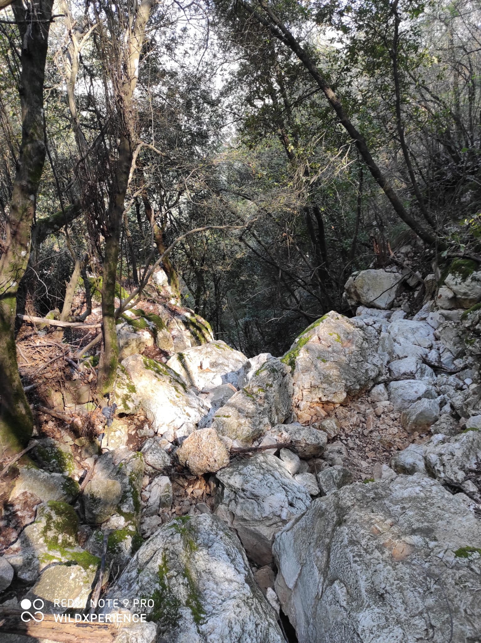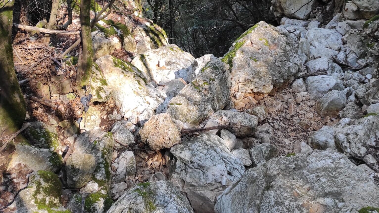 Soddisfatto già dell’avvistamento, approfitto per reintegrare un po’ di liquidi e mi rimetto in marcia. Man mano che scorro il bosco raggiungo una gola strettissima, caratterizzata da grossi massi, dove il sentiero si fa strada. Ma a lasciarmi stupito è un salto di roccia di circa una quindicina di metri. Mi fermo, foto di rito e annoto sulla mia moleskin “da tornarci durante i mesi delle piogge”. Per chi è appassionato di montagna sa bene cosa siano gli “orridi”, per chi non lo sapesse sono delle cavità carsiche generate dai corsi d’acqua siano essi perenni o stagionali.