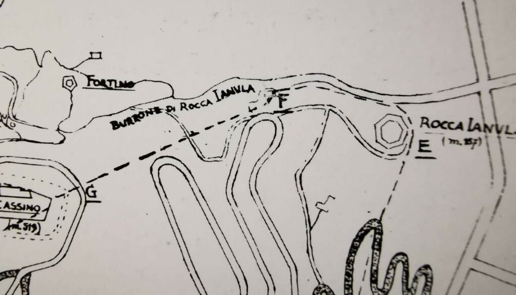 Previo un breve studio delle mappe e presi alcuni riferimenti, su cui basare i miei principi di “orienteering”, decido di attaccare Montecassino da Cassino Vecchia, da via Pinchera. Il passo veloce ed i muscoli già riscaldati mi fanno scorrere velocemente il breve tratto di strada asfaltata, guardando con ammirazione sempre quei ruderi tra la fitta vegetazione del bosco tanto cari a noi cassinati: Cassino Vecchia. Poche centinaia di metri ed imbocco il primo trail che tra gli arbusti di “sarcanda”, il profumo di mirto e alcuni alberi di “falsarago”, mi porta ai piedi della Rocca Janula che maestosa si erge a difesa del proprio avanposto. Alzando lo sguardo mi si pone dinanzi il monumento alla guerra, figura simbolo della distruzione della nostra città.