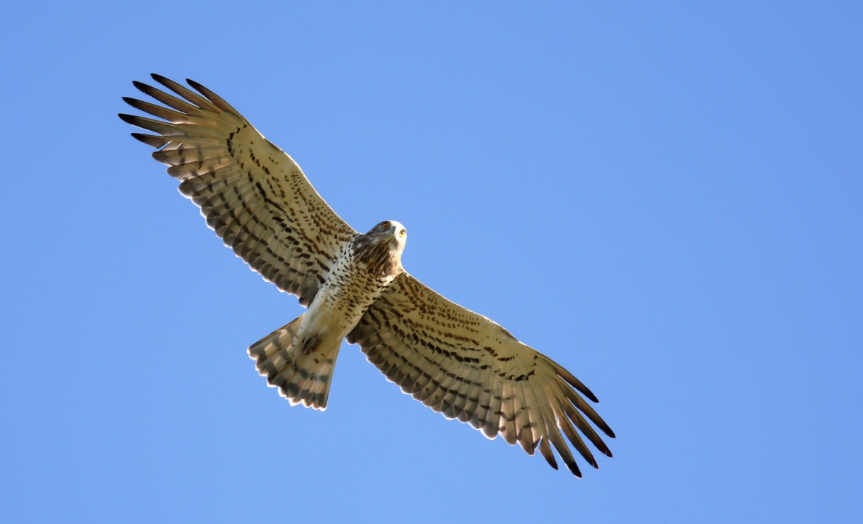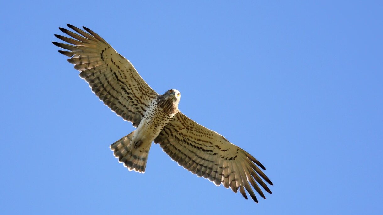 A colpire la mia attenzione un verso acuto, inconfondibile, che riconosco nell’immediato…il tempo di scrutare il cielo ed ecco che una splendida coppia di Bianconi si staglia dal vicino Monte Maggio, come a volersi appositamente lasciarsi ammirare. Uno dei due in particolare plana molto vicino alla mia roccia dalla quale, semi nascosto, li sto osservando. Ne distinguo le remiganti ed il disegno inconfondibile…poco dopo a distogliere la mia attenzione da questi splendidi rapaci il fragoroso frullo di alcuni colombacci impensieriti dai voraci predatori.