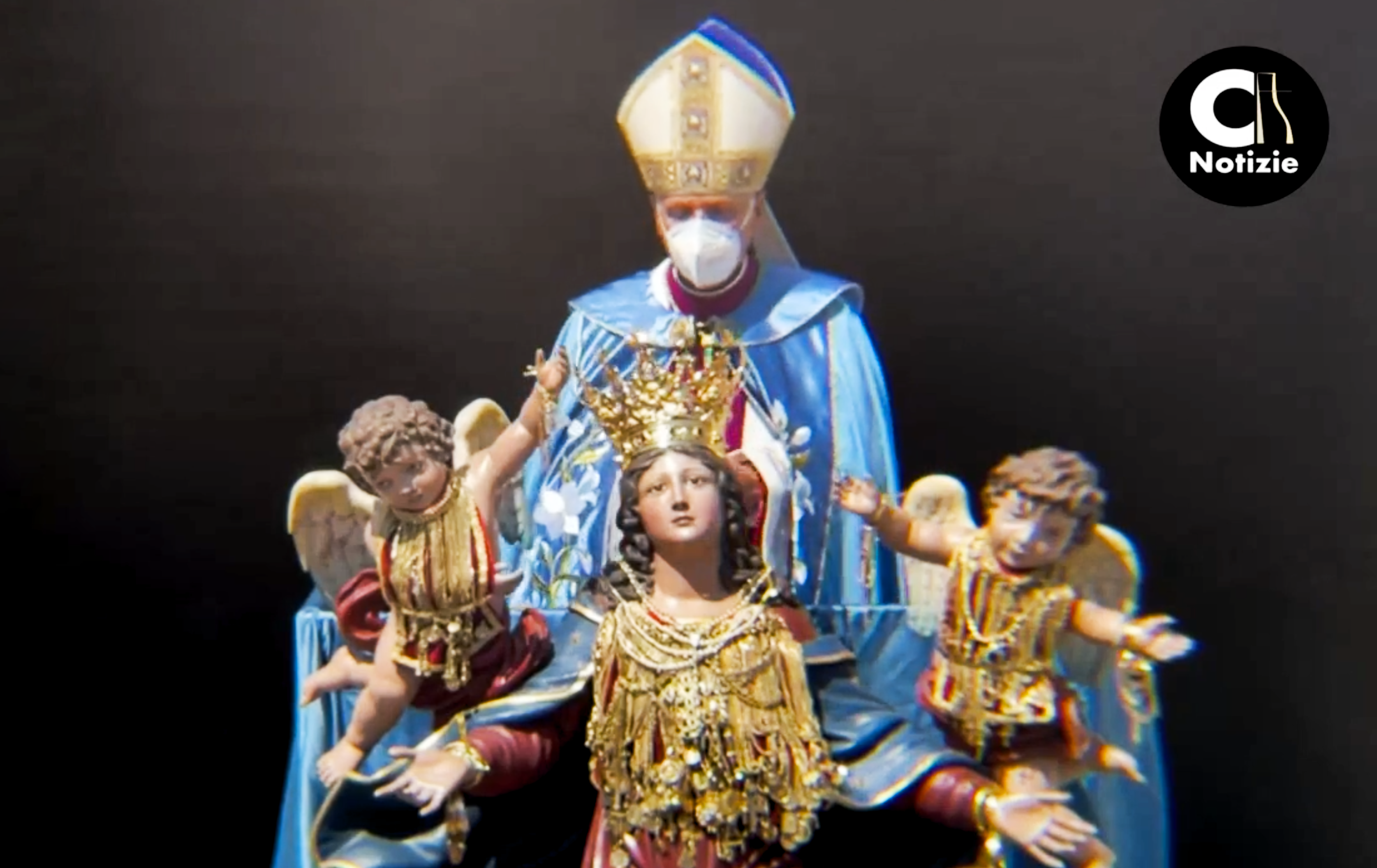Il Vescovo Gerardo Antonazzo che incorona la statua della Madonna Assunta