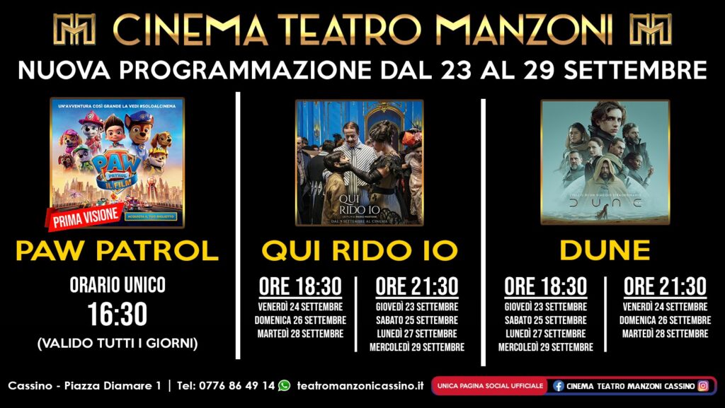 Per tutte le info e prenotazione biglietti www.teatromanzonicassino.it oppure contattare il numero fisso/whatsapp 0776.864914