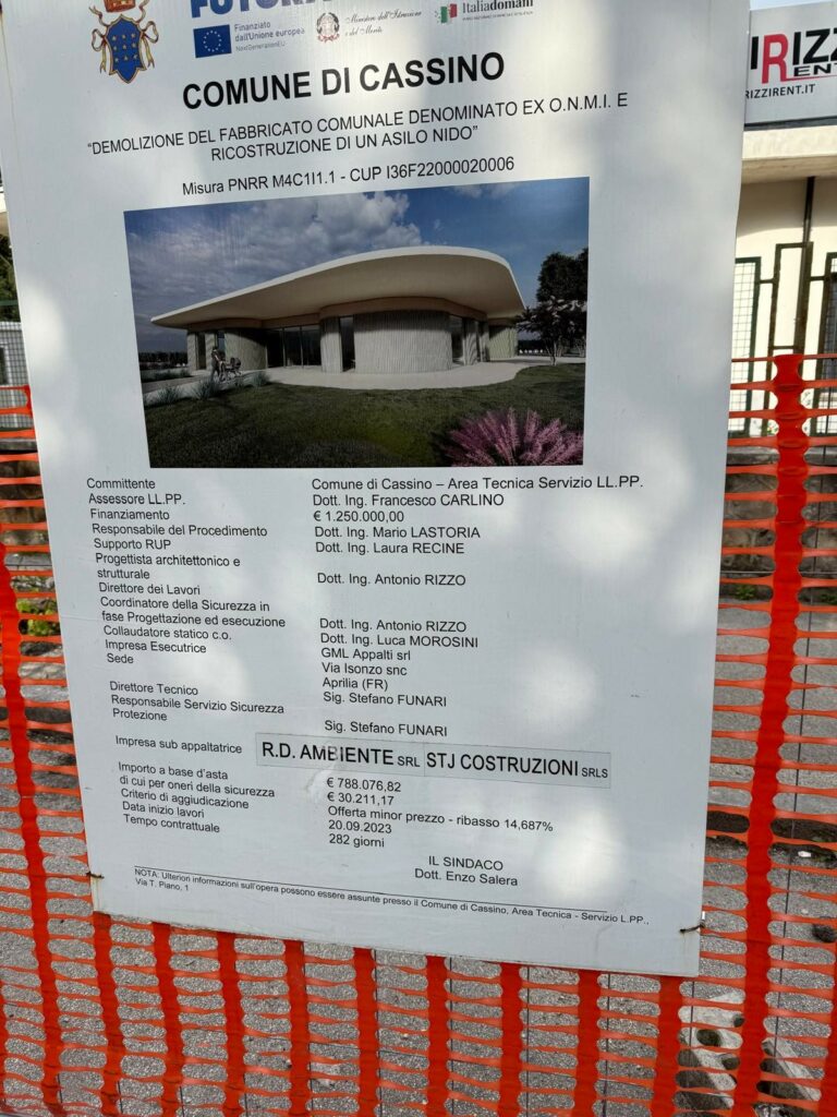 Passiamo alla struttura di via XX Settembre, un altro fiore all’occhiello tanto sbandierato. La struttura più piccolina avrebbe dovuto accogliere ancora altri piccoli studenti. A metà ottobre del 2023 così annunciavano dall’Ente questa nuova costruzione che andava a prendere il posto di un edificio storico, l’Ex Onmi, di cui neanche la targa, come promesso, è stata preservata. “Il cantiere in via XX Settembre è stato avviato il 2 ottobre scorso dalla ditta di costruzioni, aggiudicatrice della gara di appalto per 788mila euro. Per la realizzazione dell’opera occorreranno 282 giorni. Fra otto mesi e mezzo dunque avremo 60 nuovi posti per i nostri piccoli. Si andranno ad aggiungere agli altri di via Botticelli e di via Alfieri”.