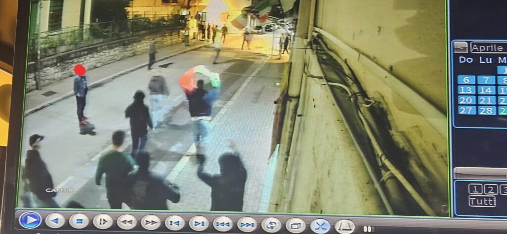 In un primo momento ha pensato al maltempo, ma la scorsa notte non si è registrato maltempo tale da poter giustificare la scena trovata questa mattina. Così Pasquale ha controllato le telecamere e ha potuto constatare, con enorme rammarico e disappunto che verso le due di notte circa un nutrito gruppo di ragazzi, neanche troppo piccoli, hanno creato il panico nella traversa. Esponendosi a rischi enormi, arrampicandosi sul palo per staccare le bandiere e sulle mura della palazzina per distruggere e rubare parte dell’allestimento. Non una semplice bravata, un’azione andata avanti per diversi minuti. Un vero e proprio “branco”, circa una ventina di ragazzi, che sono stati immortalati dalle immagini di videosorveglianza. Ovviamente è stata sporta denuncia, ma quello che Pasquale Durante e molti cittadini si domandano è il perché di tali scelleratezze.