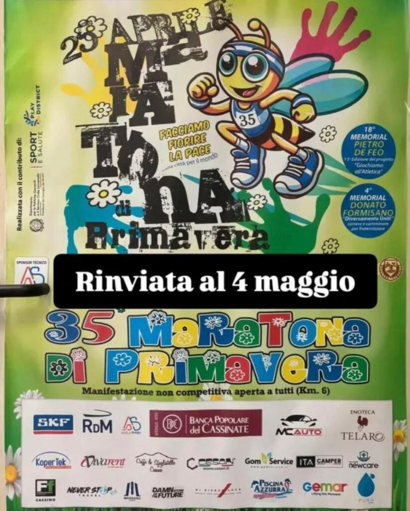 Tutto pronto per la 35^ Maratona di Primavera “Facciamo fiorire la pace”. Il 4 aprile tornerà a Cassino l’appuntamento tanto atteso per la passeggiata che unisce tutte le famiglie e riempie le strade della città in nome della pace. “Una manifestazione che acquisisce ancora più valore – dichiara Carmine Calce, presidente del Cus Cassino – in un momento storico così difficile”. In questa edizione ci sarà qualche cambiamento dovuto alla concomitanza di altre manifestazioni.