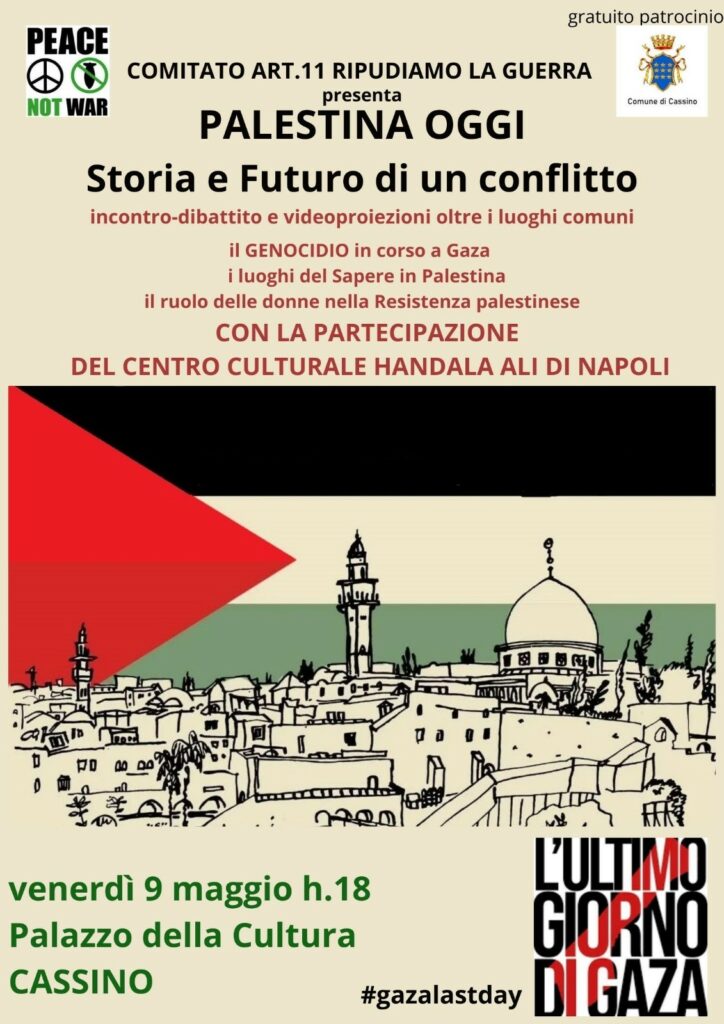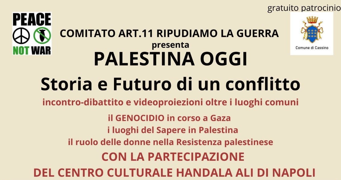 II Comitato ART.11 RIPUDIAMO LA GUERRA nell’ambito degli eventi di approfondimento preparatori e introduttivi della “fiaccolata per la pace del 17 maggio” ha organizzato un’iniziativa culturale un dibattito dedicato a comprendere quanto succede Palestina, sensibilizzare e informare – oltre quanto ci raccontano i massmedia – la nostra comunità sulla drammatica e quanto mai ingiusta guerra in corso, che ci coinvolge tutti in quanto ESSERI UMANI.