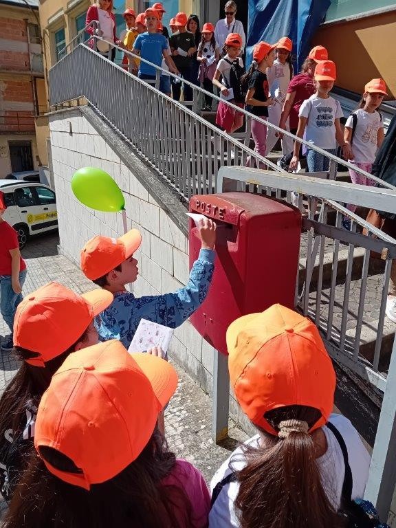 Al termine della visita, dopo che gli alunni hanno imbucato le loro letterine nella cassetta di impostazione all’esterno dell’ufficio postale.