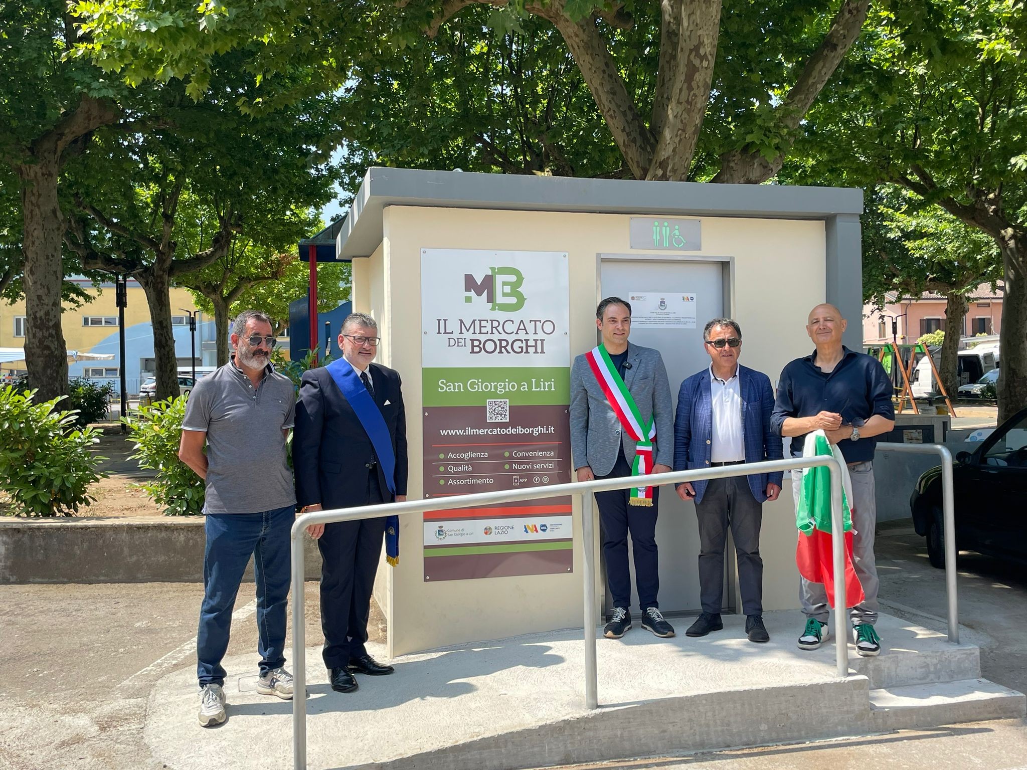 Il Mercato dei Borghi di San Giorgio a Liri è inoltre dotato di un bagno autopulente di ultima generazione, di colonnine per la ricarica elettrica degli autocarri e di un moderno raccoglitore di rifiuto organico umido, alimentato ad energia solare, che compatta e trasforma i rifiuti in compost.