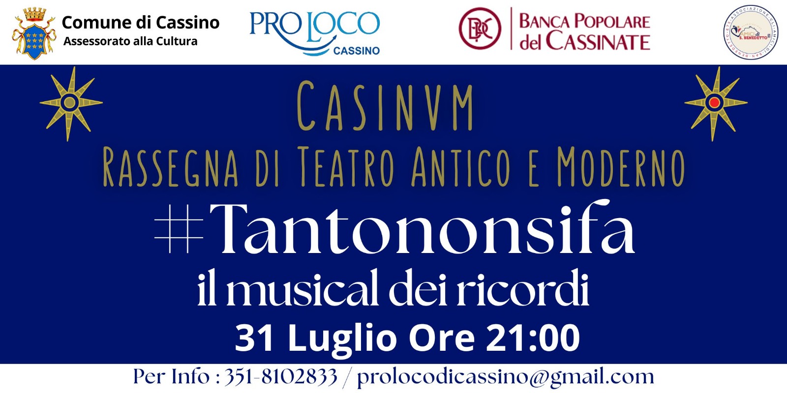 Il momento culminante dell’attività estiva sarà rappresentato dalla rassegna Casinum, elaborata in collaborazione con l’Assessorato alla Cultura del Comune di Cassino. “Desidero esprimere un particolare ringraziamento a Fortunato Redi per l’impegno profuso nell’organizzazione di questa rassegna, che rappresenta un appuntamento ormai consolidato nel panorama culturale del territorio”, dichiara il Presidente De Rosa.