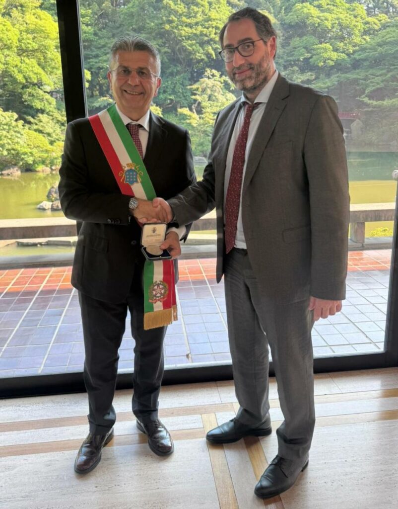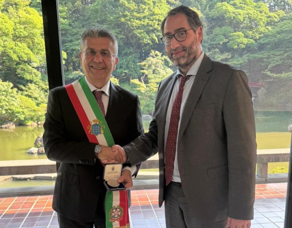 Questa mattina l’incontro di coordinamento, presso l’Ambasciata italiana a Tokio, tra il sindaco Enzo Salera e Stefano Stucci, incaricato d’Affari e Ministro Consigliere (in foto).
