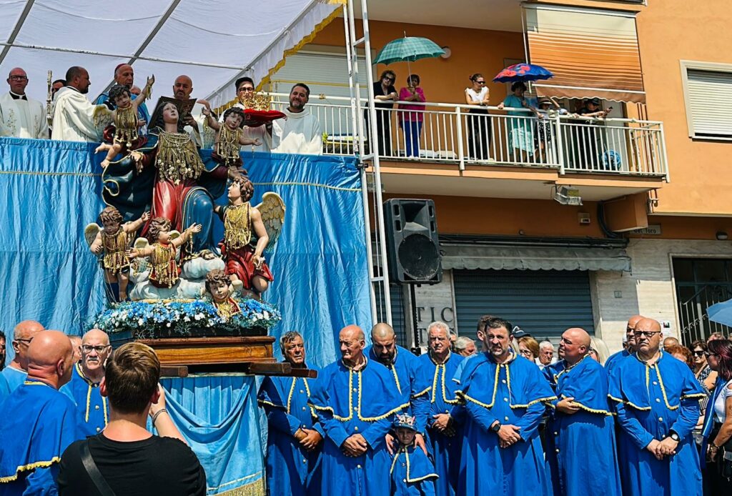 di Paola E. Polidoro – Ha solo tre anni il piccolo Raffaele De Camillo, e in occasione dell’Incoronazione dell’Assunta ha lasciato tutti senza parole. Con il suo mantello azzurro il piccolo ha affrontato tutta la processione, con un santino della Madonna in mano, un berretto di Paw Patrol e un sorriso serio e composto.