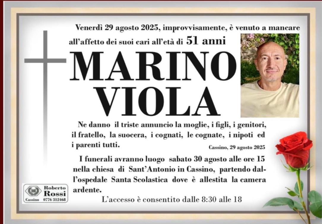 Saranno celebrati domani alle 15 nella chiesa di Sant’Antonio i funerali di Marino Viola tragicamente morto questa mattina in un incidente sulla superstrada Cassino-Sora. La notizia dell’improvvisa e tragica morte dell’uomo, molto conosciuto in città, ha lasciato la comunità nel più profondo sconforto.