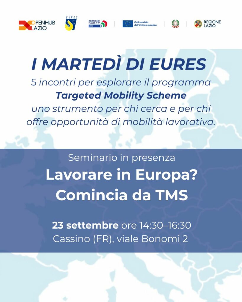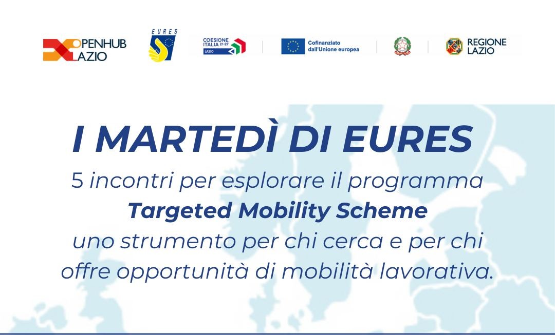 Prima tappa del ciclo organizzato da OpenHub Lazio in collaborazione con EURES per approfondire le opportunità legate al programma europeo TMS – Targeted Mobility Scheme dedicate a persone e imprese.