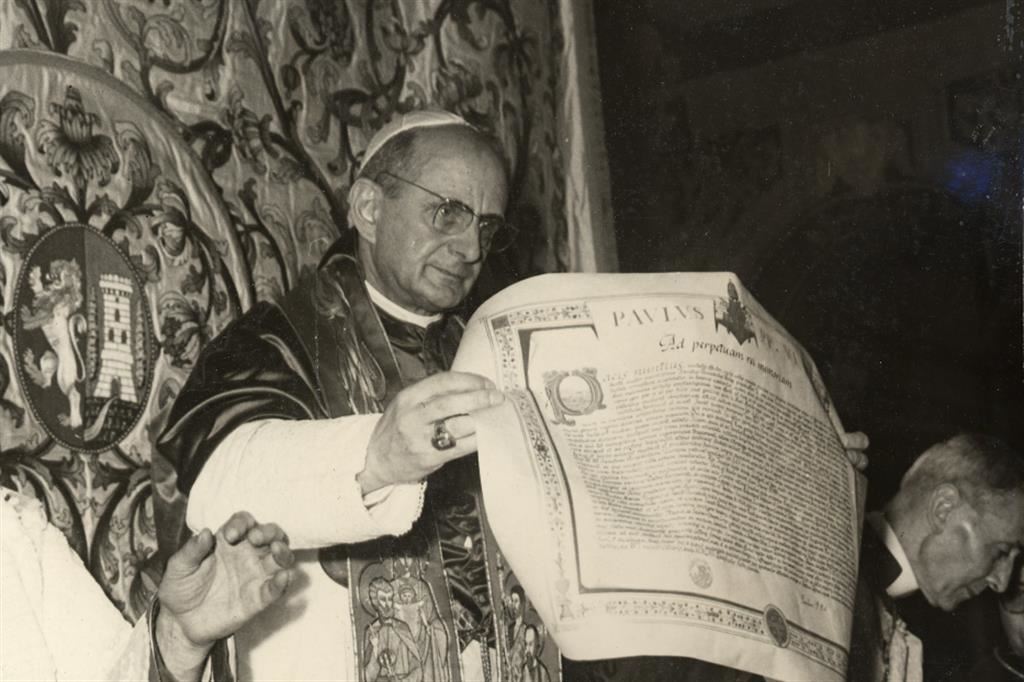 A Noi è dato portare ora altra testimonianza, che non quella sull’indole della vita monastica; e la esprimiamo in un semplice enunciato: la Chiesa ha bisogno ancor oggi di codesta forma di vita religiosa; il mondo ancor oggi ne ha bisogno. Ci dispensiamo di recarne le prove, che del resto ciascuno vede scaturire da sé dalla sola Nostra affermazione: sì, la Chiesa ed il mondo, per differenti ma convergenti ragioni, hanno bisogno che San Benedetto esca dalla comunità ecclesiale e sociale, e si circondi del suo recinto di solitudine e di silenzio, e di lì ci faccia ascoltare l’incantevole accento della sua pacata ed assorta preghiera, di lì quasi ci lusinghi e ci chiami alle sue soglie claustrali, per offrirci il quadro d’un’officina del «divino servizio», d’una piccola società ideale, dove finalmente regna l’amore, l’obbedienza, l’innocenza, la libertà dalle cose e l’arte di bene usarle, la prevalenza dello spirito, la pace in una parola, il Vangelo. San Benedetto ritorni per aiutarci a ricuperare la vita personale; quella vita personale, di cui oggi abbiamo brama ed affanno, e che lo sviluppo della vita moderna, a cui si deve il desiderio esasperato dell’essere noi stessi, soffoca mentre lo risveglia, delude mentre lo fa cosciente.