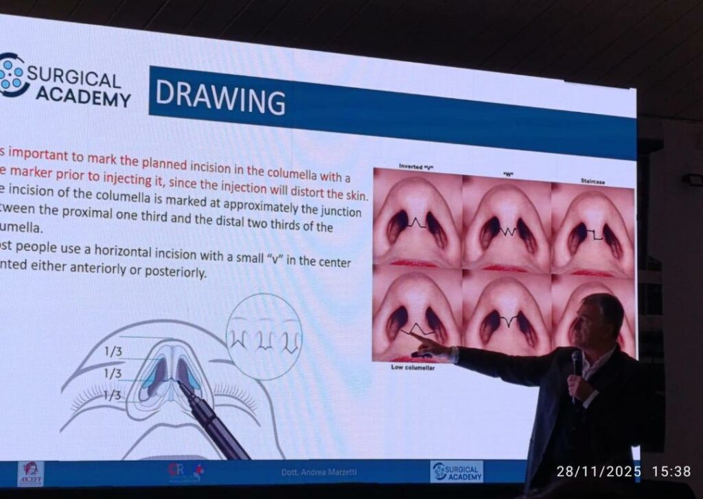 Le sessioni frontali sono state arricchite dal contributo autorevole di figure di riferimento dell’ORL e della Chirurgia Plastica, quali il prof. Gianni Danesi, Direttore del Dipartimento di ORL e Chirurgia della Base Cranica, già presidente della SIOeChCF e della SIB, e il prof. Valentino Valentini, Direttore della Clinica e della Scuola di Specializzazione dell’Università “Sapienza” di Roma. Un impianto scientifico che ha permesso ai corsisti di approfondire metodiche, protocolli e innovazioni tecnologiche, garantendo uno sguardo completo sulle più avanzate strategie diagnostiche e terapeutiche.