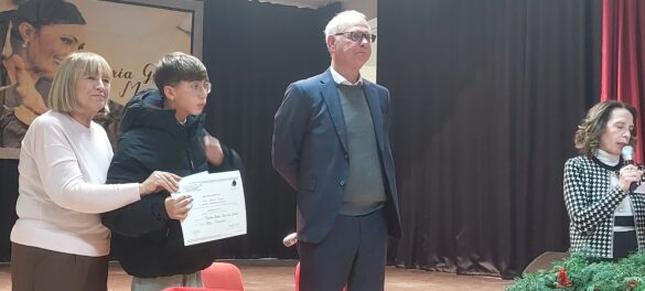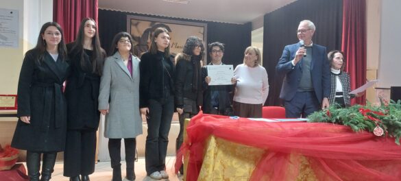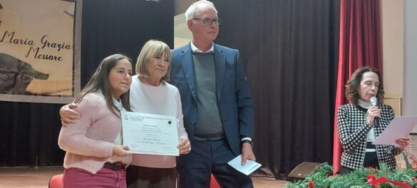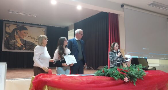 Il Dirigente scolastico prof. Salzillo ha fatto gli onori di casa e ha ricordato, con commozione, la figura di Maria Grazia, docente, sempre disponibile con tutti, preparata e attiva, attenta ai ragazzi. Poi ha ceduto la parola a M. Rosaria Lauro che, in qualità di Presidente dell’Associazione nonché madre di M. Grazia, ha sottolineato i fini dell’associazione, corrispondenti alle passioni e alle lotte da lei intraprese in vita, tra cui la lotta al tumore al seno, che ora M. Grazia ha affidato alle altre donne, e ringraziato il “Pellecchia” che ospita sempre l’iniziativa. Consegnate le targhe ai rappresentanti di tutte le scuole partecipanti, a ricordo del concorso. Altro grande amore di M. Grazia era la musica: lei stessa, alla morte del padre che aveva costituito e poi sempre diretto il Coro di S. Ambrogio, dopo aver partecipato da corista, ha fatto intitolare il Coro a suo Padre e ne ha preso la direzione, sempre con l’accompagnamento musicale del fratello Carmelo. Ora è quest’ultimo che ha a sua volta raccolto il testimone e dirige e accompagna musicalmente il Coro Annibale Messore. Così, prima della premiazione, il Coro – presentato brevemente e brillantemente dalla corista Gemma Simona De Rosa – è salito sul palco ed ha cantato con la solita maestria e simpatia, eseguendo un bel medley di canzoni natalizie, accompagnato al pianoforte dal direttore”