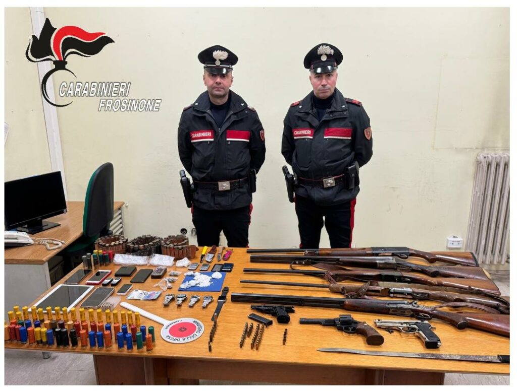 Nella giornata del 17 gennaio, personale del Reparto Operativo – Nucleo Investigativo – del Comando Provinciale di Frosinone, traeva in arresto un 26enne residente a Frosinone, poiché colto nella flagranza dei reati di illecita detenzione di armi e munizioni e detenzione ai fini di spaccio di sostanze stupefacenti.