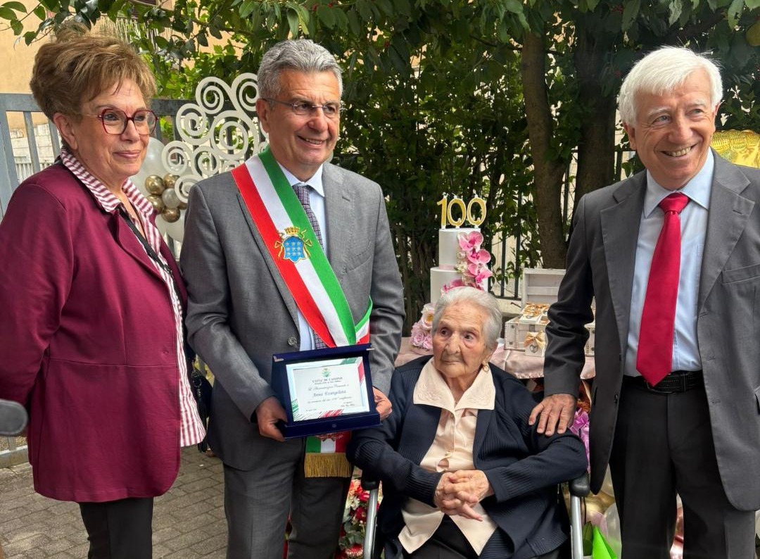 Attorniata dai suoi cari, ha festeggiato i 100 anni, questa mattina, la concittadina Anna Evangelista, una dipendente comunale negli anni che furono, come bidella e cuoca. Rimasta vedova in giovane età, è mamma di tre figlie: Vincenza, Maria e Teresa; nonna di nove nipoti e bisnonna di sei pronipoti. Una bella famiglia che mai le ha fatto mancare il calore e le attenzioni di cui sempre si avverte il bisogno, ancor più con l’andare avanti negli anni.