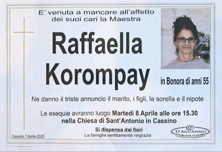 Oggi l’ultimo saluto alla maestra Raffaella Korompay
