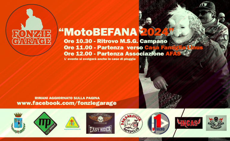 2 MIN Per il secondo anno, la pagina www.facebook.com/fonziegarage organizza il motobefana.Il mondo dei biker, viene spesso accostato a birra, spogliarelli e musica rock. L’esperienza che offre il nostro gruppo è altamente