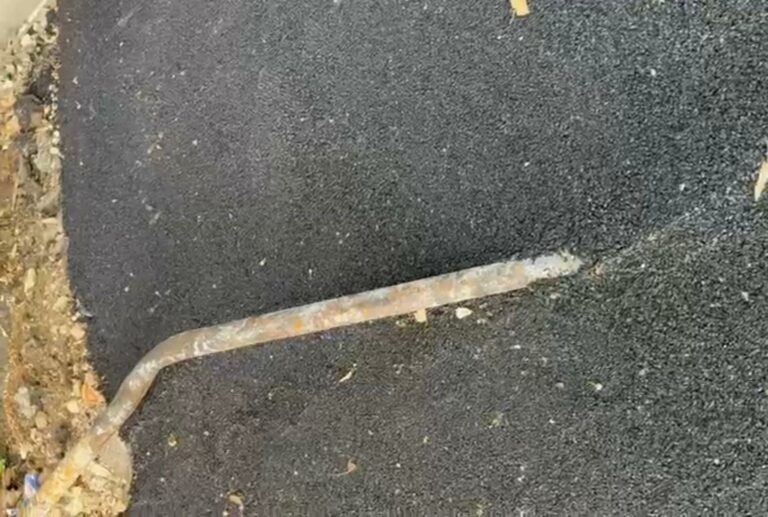 2 MIN Il tubo arrugginito e lasciato sulla pavimentazione è stato “saldato” con l’asfalto diventando un ostacolo pericoloso per i pedoni