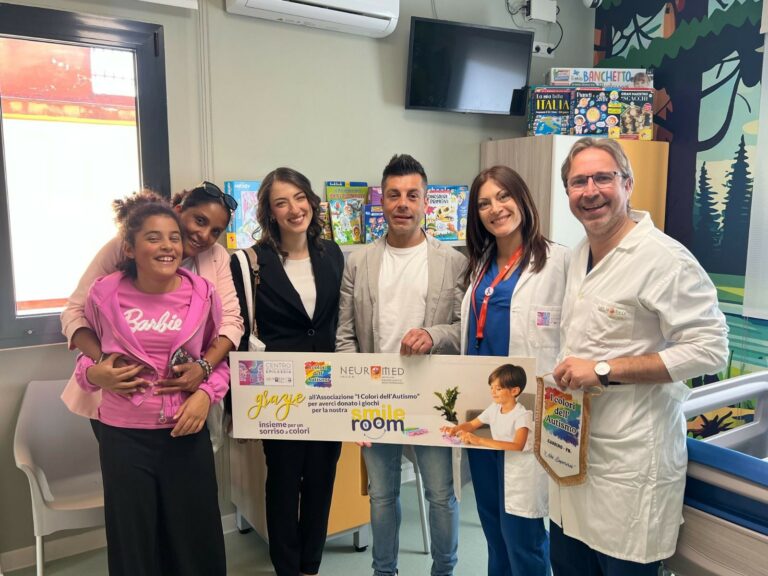 Neuromed, una stanza piena di sorrisi: giochi in dono alla Smile Room dall’associazione “I Colori dell’Autismo”
